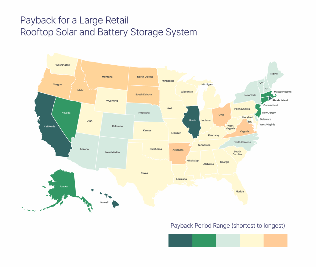 While every market is different, Dan Roberts, Co-Founder and SVP of Sales at VECKTA, shared a heat map showing where onsite solar delivers the strongest returns. Not surprisingly, the darkest green areas align with high utility rates: